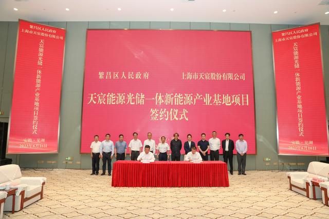 近日,總投資116億元的天宸能源光儲(chǔ)一體新能源產(chǎn)業(yè)基地項(xiàng)目正式簽約。省政府駐滬辦黨組成員、副主任賀東,天宸股份有限公司董事長(zhǎng)葉茂菁、副董事長(zhǎng)王學(xué)進(jìn),省生態(tài)環(huán)境廳副廳長(zhǎng)羅宏,蕪湖市副市長(zhǎng)向繼輝,市政府秘書長(zhǎng)王志鵬,繁昌區(qū)委書記瞿輝,區(qū)長(zhǎng)許有龍等見證項(xiàng)目簽約。