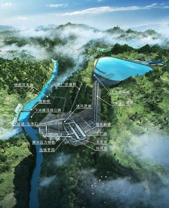 項目位于貴陽市修文縣谷堡鎮(zhèn),地處貴州電網(wǎng)黔中地區(qū)負(fù)荷中心,裝機(jī)容量150萬千瓦,主要由4臺375兆瓦的可逆式水輪發(fā)電機(jī)組、上水庫、下水庫、輸水系統(tǒng)、地下廠房、地面開關(guān)站及場內(nèi)永久道路等組成。