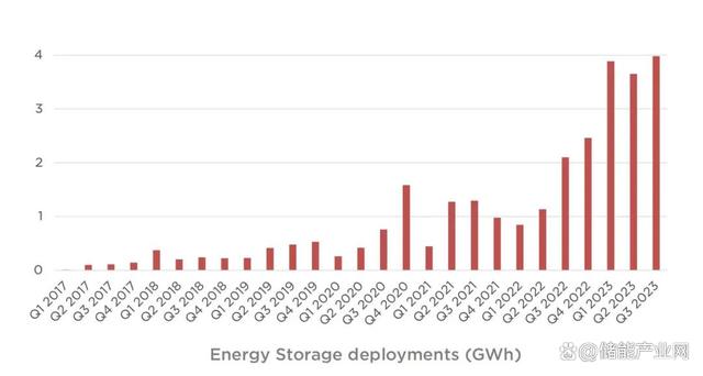 今年4月9日簽約的特斯拉儲能超級工廠,落戶上海臨港,初期規(guī)劃年產(chǎn)商用儲能電池1萬臺,儲能規(guī)模超過其加州工廠的產(chǎn)能,產(chǎn)品范圍覆蓋全球市場。從財報中的數(shù)據(jù)可以看出,特斯拉儲能的部署在 2023 年增長迅猛。