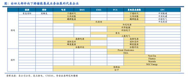 具體來說,儲能系統(tǒng)的核心有“四大件”:電池組、儲能變流器(PCS)、電池管理系統(tǒng)(BMS)、能量管理系統(tǒng)(EMS)等。早期每個環(huán)節(jié)的核心企業(yè),都能過得不錯。但如今,越來越多企業(yè),從單一產(chǎn)品走向系統(tǒng)集成業(yè)務(wù),加大一體化力度,如陽光電源、科陸電子從PCS進入系統(tǒng)集成,寧德時代、億緯鋰能等公司從電池進入系統(tǒng)集成。