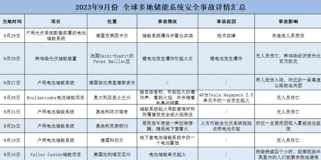 據(jù)不完全統(tǒng)計,僅9月下半月,全球就發(fā)生了8起儲能系統(tǒng)起火及爆炸事故。接連不斷的儲能電池起火事件,讓儲能安全警鐘再次拉響。