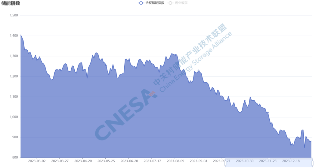 整體上,2023年儲(chǔ)能指數(shù)呈現(xiàn)高開低走的局面。