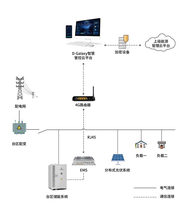 臺區(qū)的儲能系統(tǒng)不是獨(dú)立運(yùn)行的,建立臺區(qū)間互聯(lián)互通的智能運(yùn)維體系,結(jié)合臺區(qū)負(fù)荷特性進(jìn)行智能化的管理和調(diào)度,才能充分發(fā)揮其在電能治理方面的重要作用。弘正數(shù)字化儲能系統(tǒng)可以實(shí)現(xiàn)多個臺區(qū)間互聯(lián)互供,緩解負(fù)荷尖峰,均衡負(fù)載,提高剩余容量的利用率;同時,通過接入D-Galaxy智慧儲能管控平臺加速臺區(qū)間信息交互及優(yōu)化調(diào)控,實(shí)時監(jiān)測電網(wǎng)狀態(tài)和需求,快速響應(yīng)電網(wǎng)變化,完成控制系統(tǒng)能量管理策略和運(yùn)行模式判斷與切換,增加電力系統(tǒng)靈活性,助力新型電網(wǎng)安全運(yùn)行。