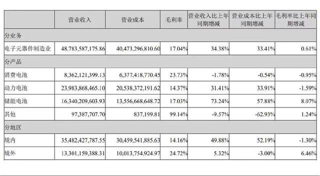 以今年3月國(guó)內(nèi)儲(chǔ)能電芯出貨量排名第二的億緯鋰能為例,公司儲(chǔ)能電池業(yè)務(wù)營(yíng)收已反超動(dòng)力電池。今年一季度,公司儲(chǔ)能電池出貨量7.02GWh,同比增長(zhǎng)113.11%;動(dòng)力電池方面,出貨量6.45GWh,同比增長(zhǎng)僅5.98%。對(duì)比全年數(shù)據(jù)來(lái)看,億緯鋰能儲(chǔ)能電池營(yíng)收占比也在不斷上升,從2023年上半年的30.78%上升至2023年全年的33.5%。與此相對(duì)應(yīng)的是,公司的動(dòng)力電池營(yíng)收占比持續(xù)下降,同期從52.75%下降至49.16%。毛利率方面,同花順iFinD數(shù)據(jù)顯示,億緯鋰能一季度銷售毛利率17.64%,維持在較高水平,但相較寧德時(shí)代同期26.42%的銷售毛利率還有較大差距。