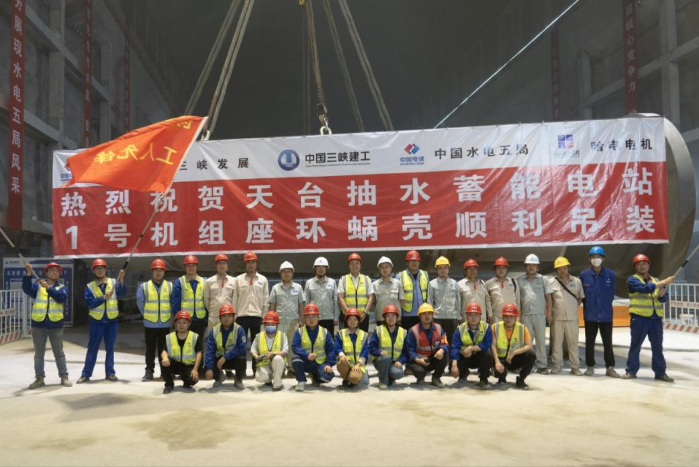浙江天臺(tái)抽水蓄能電站首臺(tái)機(jī)組座環(huán)蝸殼完成吊裝