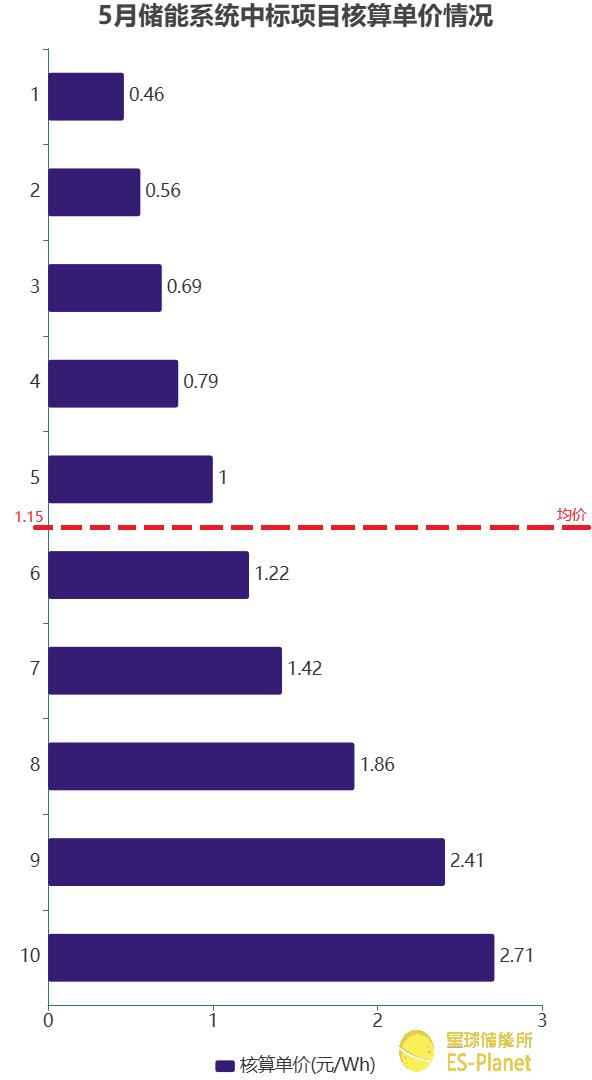 ※ 5月儲(chǔ)能系統(tǒng)中標(biāo)單價(jià)情況 來(lái)源:星球儲(chǔ)能所