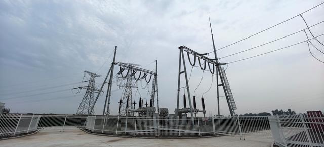潞城仁和儲能電站是一個電化學(xué)儲能電站,與埋在地下的飛輪裝置不同,電化學(xué)儲能的裝置都在地面以上,園區(qū)主要分為兩個部分:升壓站和儲能區(qū)。升壓站內(nèi)的幾個立柱支撐起了進出能量的電纜,像一座橋梁連接起外部電力系統(tǒng)與電站儲能區(qū)之間的能量交換。