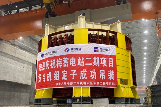 11月8日,梅蓄電站二期項目首臺(5號)機組定子吊裝完成,為2025年首臺機投產發(fā)電奠定了堅實基礎。