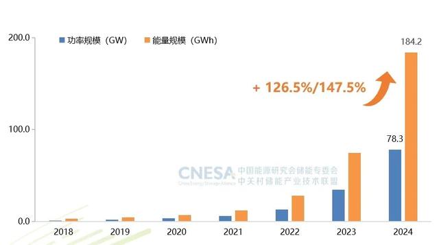 據(jù)CNESA DataLink全球儲(chǔ)能數(shù)據(jù)庫(kù)統(tǒng)計(jì),截至2024年底,我國(guó)電力儲(chǔ)能累計(jì)裝機(jī)量實(shí)現(xiàn)重大突破,首次突破百吉瓦大關(guān),達(dá)到137.9GW。其中,新型儲(chǔ)能裝機(jī)規(guī)模首次超過抽水蓄能,達(dá)到78.3GW/184.2GWh,功率和能量規(guī)模同比增長(zhǎng)分別達(dá)到126.5%和147.5%。這一數(shù)據(jù)標(biāo)志著中國(guó)新型儲(chǔ)能產(chǎn)業(yè)發(fā)展進(jìn)入新的歷史階段。