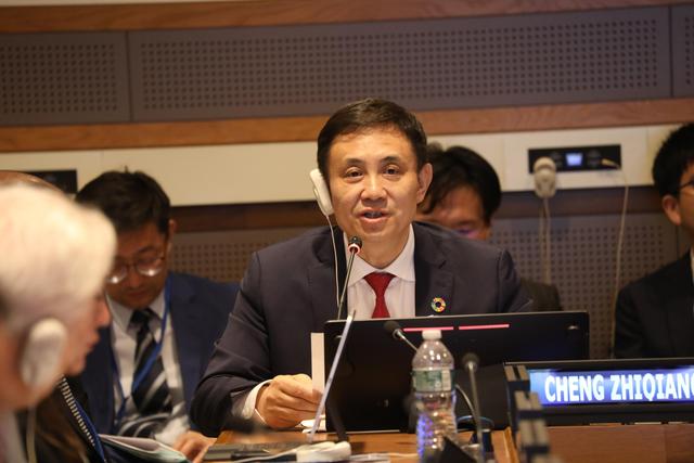 當(dāng)?shù)貢r(shí)間7月13日,聯(lián)合國(guó)可持續(xù)發(fā)展高級(jí)別政治論壇能源主題邊會(huì)在紐約聯(lián)合國(guó)總部舉行,邊會(huì)由合作組織合作總監(jiān)程志強(qiáng)主持。(合作組織供圖)
