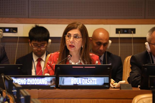 聯(lián)合國(guó)副秘書(shū)長(zhǎng)兼聯(lián)合國(guó)西亞經(jīng)社會(huì)執(zhí)行秘書(shū)羅拉·達(dá)什提在主題邊會(huì)上講話(huà)。(合作組織供圖)