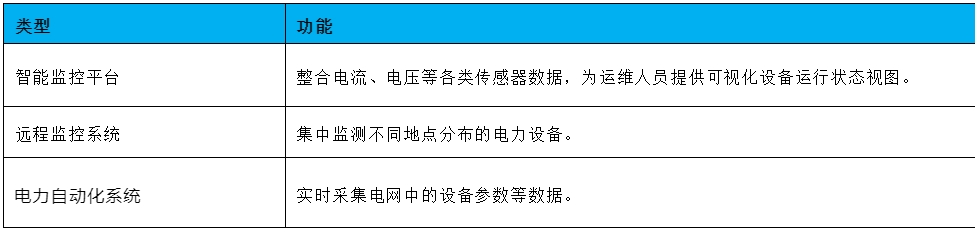 包括各類智能監(jiān)控平臺、遠程監(jiān)控系統(tǒng)、電力自動化系統(tǒng)等收集的設(shè)備運行狀態(tài)和電網(wǎng)運行信息。其功能見表4。