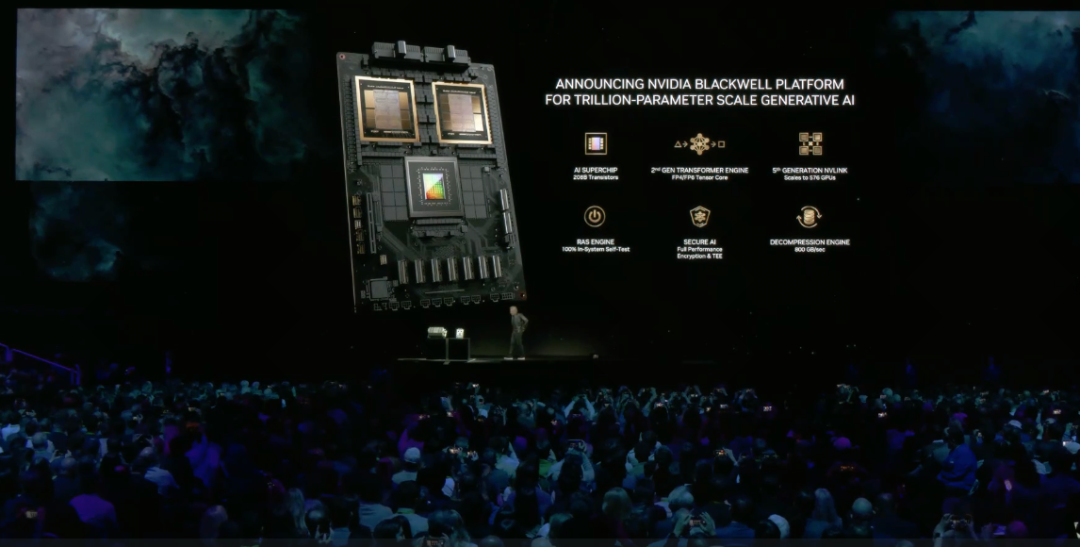 發(fā)布會(huì)上,黃仁勛宣布英偉達(dá)(NVIDIA)將推出用于萬億參數(shù)級(jí)生成式AI的NVIDIA Blackwell架構(gòu)。搭載Blackwell技術(shù),英偉達(dá)將推出B200和GB200系列芯片。