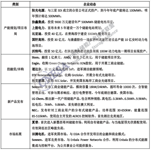 除了開展若干儲能項(xiàng)目,三季度,還有一些儲能企業(yè)相繼發(fā)布了產(chǎn)能規(guī)劃、投融資并購、新產(chǎn)品、市場拓展等信息,以增強(qiáng)自身資金儲備、技術(shù)儲備、提高產(chǎn)品競爭力、拓展儲能發(fā)展新渠道、探尋儲能發(fā)展新模式。這些動態(tài)主要包括: