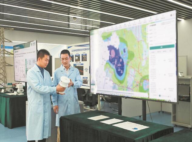 江蘇電科院員工在江蘇電網(wǎng)防災(zāi)減災(zāi)中心探討持續(xù)性強(qiáng)降雨對城市電網(wǎng)設(shè)備的影響。孫婷 攝