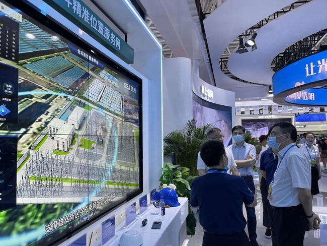 國網(wǎng)信通產(chǎn)業(yè)集團工作人員介紹電力北斗精準位置服務(wù)網(wǎng)。