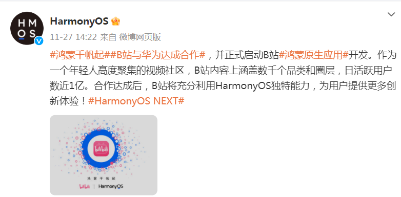 1月10日晚,HarmonyOS微博發(fā)文稱:京東啟動(dòng)鴻蒙原生應(yīng)用開發(fā),雙方將攜手為消費(fèi)者帶來(lái)全場(chǎng)景“多快好省”購(gòu)物體驗(yàn),更智能,更貼心。