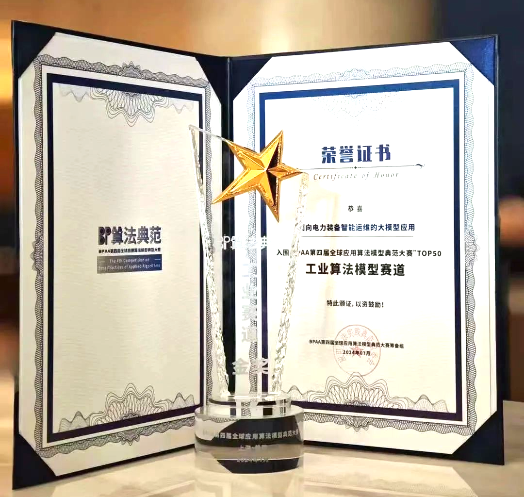 大會(huì)期間,集團(tuán)公司所屬研究院數(shù)智化技術(shù)中心與所屬許繼電氣軟件公司人工智能研發(fā)部組成聯(lián)合團(tuán)隊(duì),參加大會(huì)品牌賽事“BPAA第四屆全球應(yīng)用算法模型典范大賽”,充分展示了大模型在輸變電裝備領(lǐng)域的創(chuàng)新應(yīng)用成果。團(tuán)隊(duì)經(jīng)過(guò)初賽、賽道賽、總決賽的層層角逐,從近300支參賽隊(duì)伍中脫穎而出,成功入圍TOP50榜單并晉級(jí)總決賽,最終斬獲工業(yè)算法賽道金獎(jiǎng)。