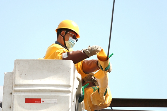 中國電力網(wǎng)訊 5月7日,在濰坊壽光市文正教育學(xué)校附近,國網(wǎng)壽光市供電公司帶電作業(yè)人員對(duì)10千伏全福元1線東郭支線02號(hào)桿,10千伏華府線東七南支線04號(hào)桿進(jìn)行帶電絕緣化改造,進(jìn)一步提高線路安全運(yùn)行水平,確保廣大師生能夠用上安全電、放心電。