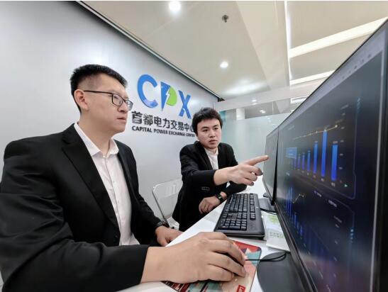 圖為首都電力交易中心工作人員對運營數據進行分析。