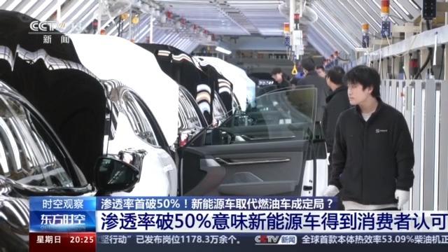 中國汽車流通協(xié)會乘聯(lián)分會秘書長 崔東樹:滲透率首超50%的話,目前意味著新能源車得到了消費者的日益的認(rèn)可。而且新能源車產(chǎn)品的性價比已經(jīng)達(dá)到了主流消費者接受的程度。證明了整個新能源車未來的發(fā)展?jié)摿€是比較大的,呈現(xiàn)持續(xù)逐步上升的態(tài)勢。未來新能源車成為我們消費主流是必然趨勢。