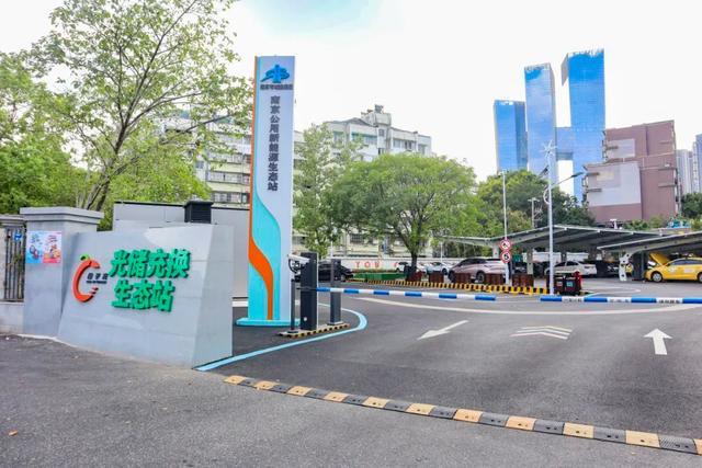 建鄴區(qū)湖西街“光儲充換”生態(tài)示范站,占地約3500平方米,利用車位棚頂、休息室屋頂建設(shè)光伏系統(tǒng),配合分布式儲能設(shè)備,共設(shè)36個(gè)充電車位,儲能柜蓄滿電約645千瓦時(shí),最多可供15—20輛新能源車充電。