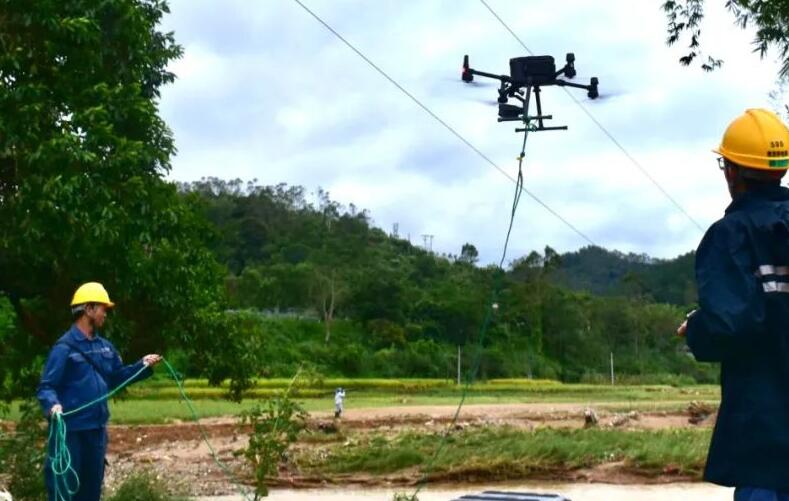 爭(zhēng)分奪秒全力開展搶修爭(zhēng)取群眾早一刻用電一輛無人機(jī)牽引著拉線緩緩升起,正在跨越河水湍急的黃華江支流。在茂名信宜市朱砂鎮(zhèn)元墩村,茂名信宜局朱砂供電所搶修隊(duì)伍正在使用無人機(jī)協(xié)助放線,爭(zhēng)分多秒加快抗險(xiǎn)搶修進(jìn)度。