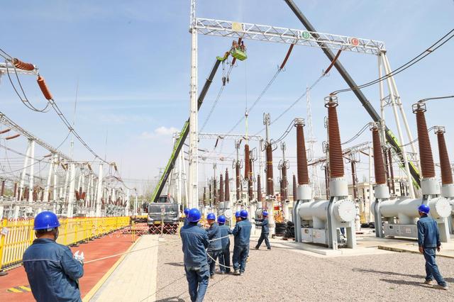 4月9日,在330千伏眉峴變電站,作業(yè)人員對(duì)站內(nèi)開關(guān)進(jìn)行更換,這是國網(wǎng)平?jīng)龉╇姽臼状巫灾鲗?shí)施變電站330千伏設(shè)備改造工程,標(biāo)志著全業(yè)務(wù)核心班組建設(shè)水平邁上新臺(tái)階、實(shí)現(xiàn)新突破。