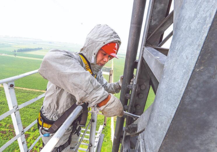 陶留海是國網(wǎng)河南超高壓公司輸電運(yùn)檢部輸電帶電作業(yè)班副班長(zhǎng)。他所說的“尖端裝備”,是檢修人員乘坐的電動(dòng)升降裝置。2019年,陶留海帶領(lǐng)團(tuán)隊(duì)研發(fā)出電動(dòng)升降裝置,并在±1100千伏昌吉—古泉特高壓直流工程帶電作業(yè)中實(shí)現(xiàn)首次應(yīng)用。有了它,檢修人員不用再攀登鐵塔,而是可以像坐電梯一樣到達(dá)帶電作業(yè)位置,提高了作業(yè)效率和安全性。