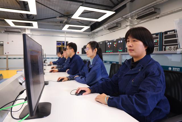 在國網(wǎng)北京市電力公司新型電力系統(tǒng)實驗基地里,國內(nèi)首條充電設施自動化檢測流水線正在有序運轉。技術人員坐在操作臺前,點擊鼠標操控電腦系統(tǒng),流水線上的巨型機械臂就開始自動運行,對測試區(qū)域里的電動汽車充電樁進行自動檢測。