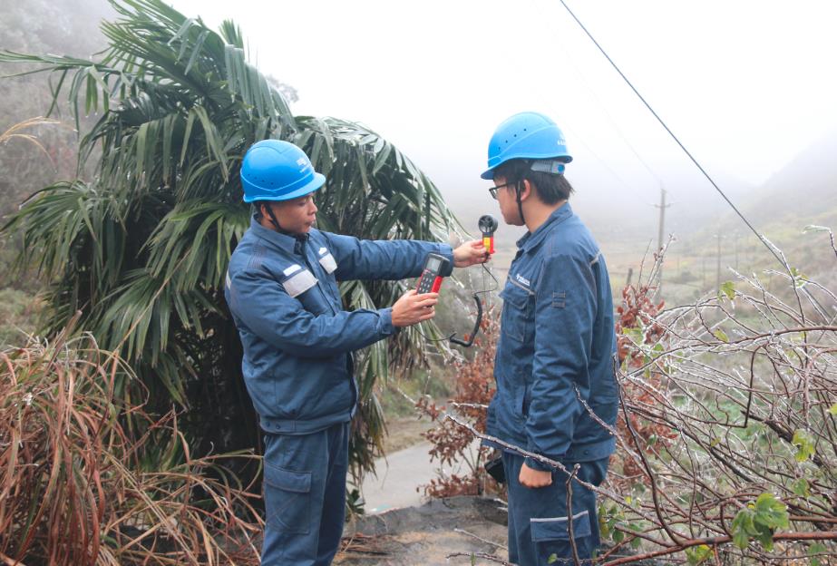 “線路有輕微覆冰,鐵塔塔基穩(wěn)固,螺絲沒有松動。”12月1日,南方電網(wǎng)廣東韶關(guān)乳源供電局陳宇飛等人冒著凍雨來到大橋鎮(zhèn)中沖、三元、紅云等村莊,重點對高海拔地區(qū)、山頂、大風(fēng)口等特殊地段鐵塔和線路覆冰情況進(jìn)行巡視檢查,及時處置線路覆冰,確保通電正常。