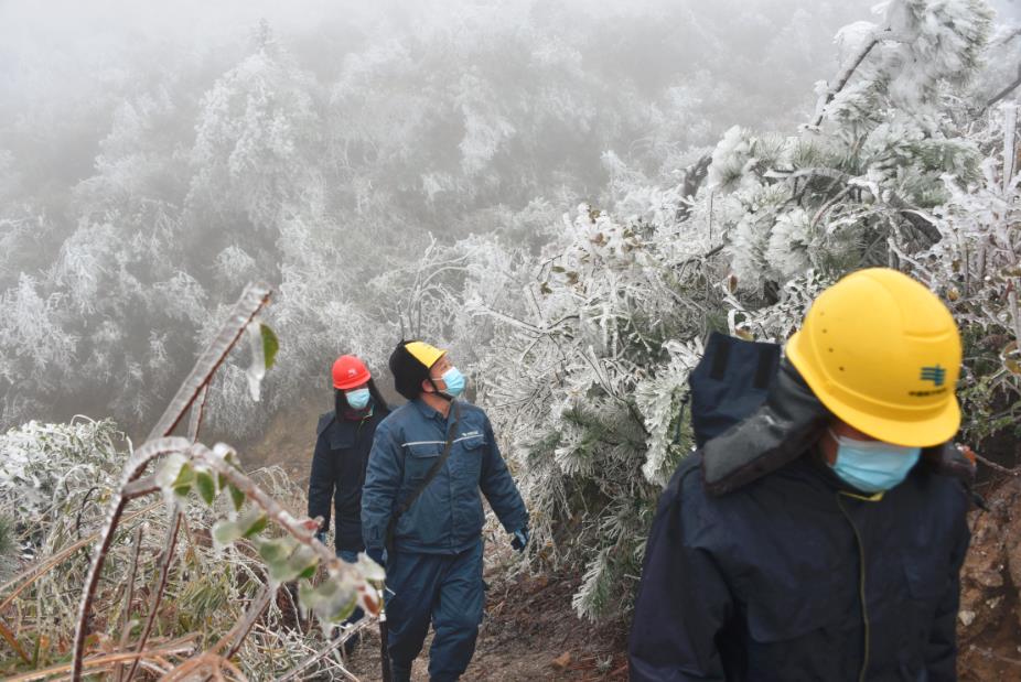 11月30日,南方電網(wǎng)廣東韶關(guān)供電局的工作人員開展覆冰前線路特巡。