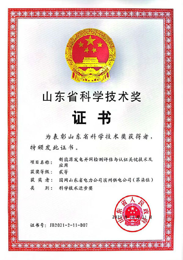 本網(wǎng)訊 7月1日,筆者從《山東省人民政府關(guān)于2021年度山東省科學技術(shù)獎勵的決定》上了解到,濱州公司參與申報的《新能源發(fā)電并網(wǎng)檢測評估與認證關(guān)鍵技術(shù)研究及應用》項目榮獲2021年度山東省科學技術(shù)獎科技進步二等獎。這是濱州公司首次獲得山東省科學技術(shù)獎。