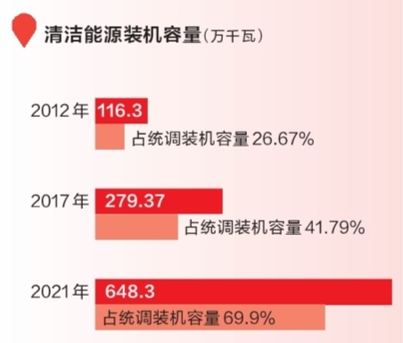 從2012年到2021年,海南全省清潔能源裝機(jī)容量從116.3萬(wàn)千瓦增長(zhǎng)到648.3萬(wàn)千瓦,裝機(jī)占比從26.67%增長(zhǎng)到69.9%。海南電網(wǎng)消納清潔能源從27.42億千瓦時(shí)增長(zhǎng)到165.4億千瓦時(shí);綜合線損率從7.99%下降到5.36%。一組組數(shù)據(jù)的對(duì)比,揭示了海南電網(wǎng)公司推動(dòng)能源綠色低碳轉(zhuǎn)型的深刻變化。