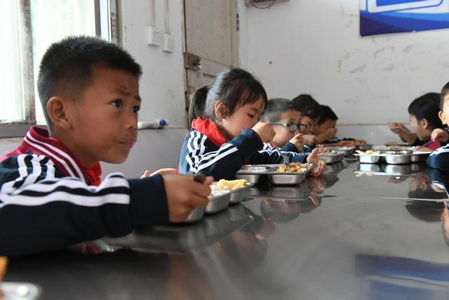 洛麥小學(xué)學(xué)生用捐贈(zèng)的餐盤吃飯。龍定錦攝