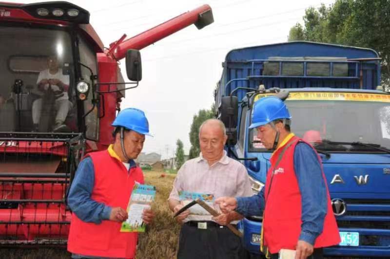 在沁陽市道口村的小麥搶收現(xiàn)場,共產(chǎn)黨員服務隊員深入田間地頭,向廣大農(nóng)民朋友和收割機駕駛員發(fā)放電力設施保護宣傳資料,提高群眾安全用電和電力設施保護意識。