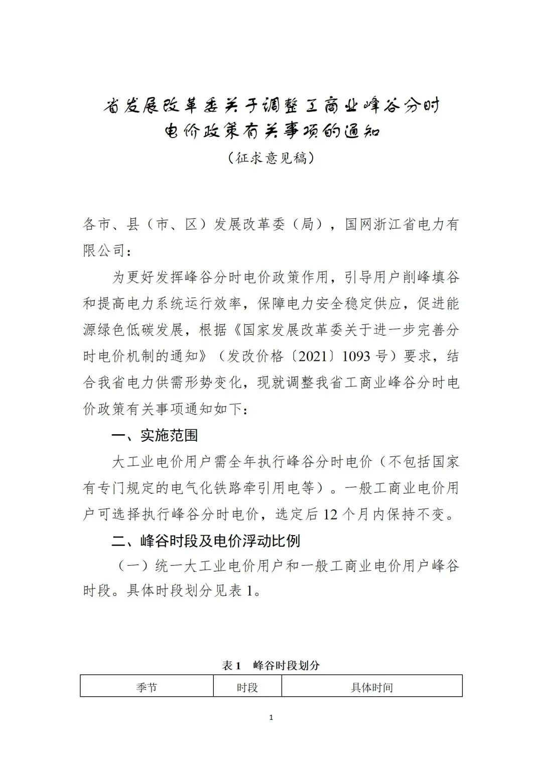 1.關(guān)于調(diào)整工商業(yè)峰谷分時電價政策有關(guān)事項的通知(征求意見稿)