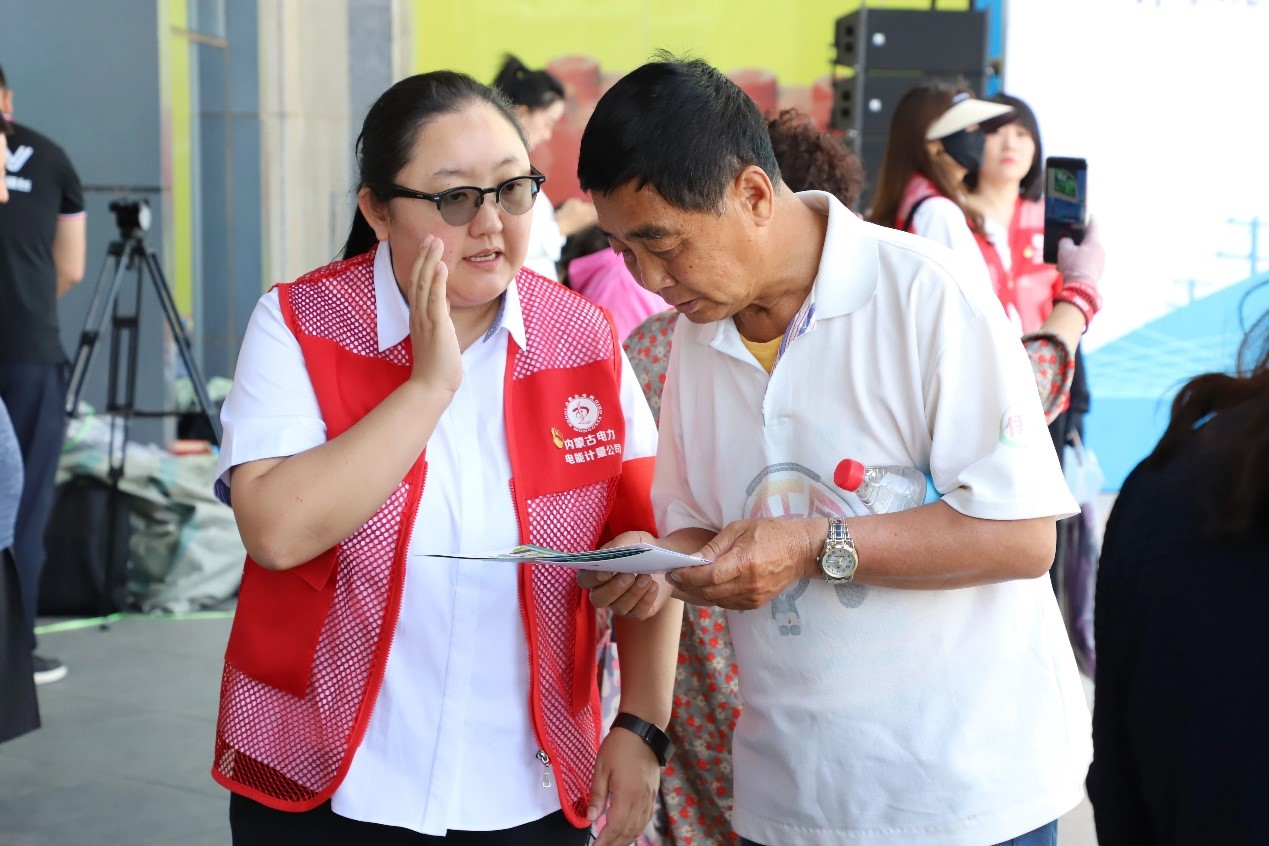 活動中通過設(shè)立展位、展板,面向用電客戶展開用電知識宣傳,向用電客戶科普了居民安全用電行為,講解了電能表、線上繳納電費(fèi)、蒙電E家等居民客戶實際用電的問題。并且通過對比老舊電能表與新一代智能電能表,講述了電能計量裝置的發(fā)展,展現(xiàn)了新一代IR46電能表的優(yōu)勢及為民眾生活中提供的便捷,工作人員針對智能表與傳統(tǒng)電能表對用戶用電量差異進(jìn)行了現(xiàn)場答疑。