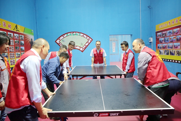 當(dāng)天上午9時,該公司招募了來自三期項(xiàng)目黨支部的10余名黨員志愿者,開展了第一次“陜電之光”志愿服務(wù)活動,為當(dāng)晚即將進(jìn)行的湖南石門五洲乒乓球俱樂部“五周年慶典暨健平源杯”乒乓球團(tuán)體賽布置場地?;顒又?,志愿者們齊心協(xié)力將乒乓球臺、比賽圍欄以及其他比賽用具等抬至規(guī)定的位置,精心布置乒乓球團(tuán)體賽活動場地,展現(xiàn)了無私奉獻(xiàn)、團(tuán)結(jié)友愛、助人為樂、積極向上的志愿風(fēng)采。