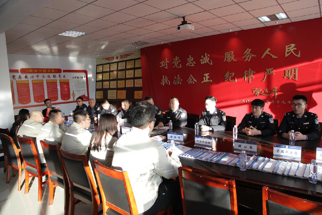 活動期間,錫盟新能源事業(yè)部黨員干部職工來到寶力根派出所,在講解人員的帶領(lǐng)下,參觀了綜合指揮室、便民服務(wù)站、辦事窗口、警史館、紅色資料室,零距離觀摩、體驗公安工作和警營文化,了解作為錫林浩特市第一個派出所的發(fā)展歷程和光輝事跡,圍繞“央企黨員進警營團結(jié)共建創(chuàng)平安”主題進行交流座談。