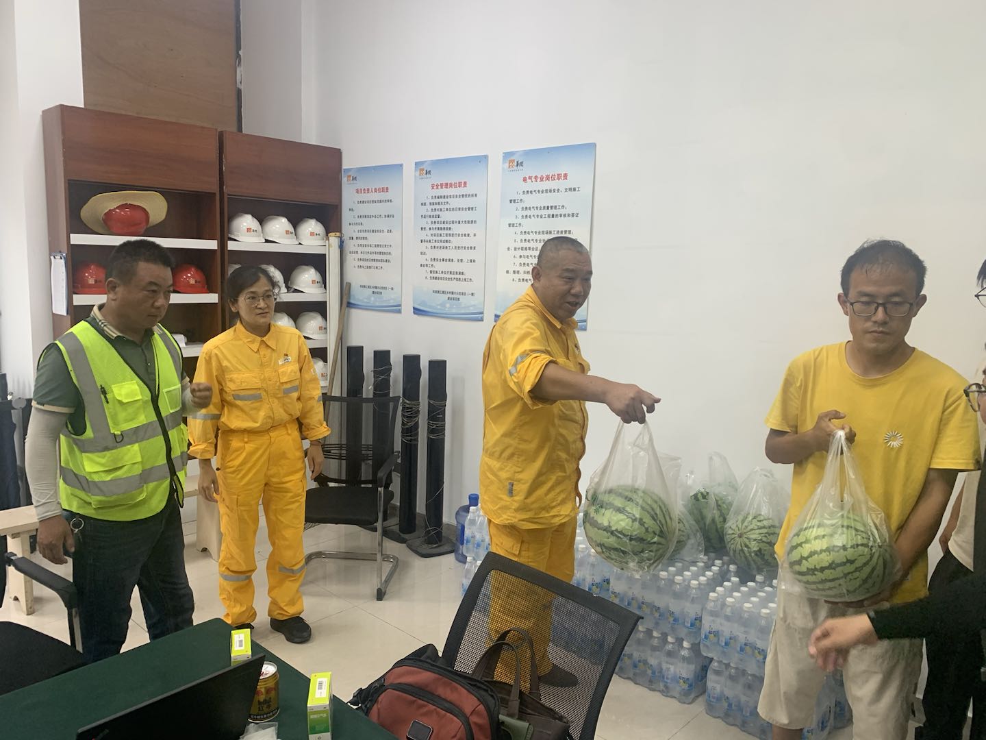 黨支部成員攜帶著精心準(zhǔn)備的清涼物資,諸如鹽汽水、水果以及防暑降溫藥品,逐一將物資送到了清江浦每一位施工單位人員的手中。物資雖然微不足道,但卻表達(dá)了黨組織對(duì)一線工作人員的誠摯問候和關(guān)心。