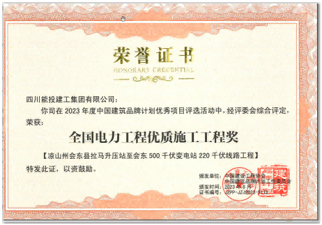 近日,在2023(第七屆)中國建設(shè)行業(yè)品牌發(fā)展峰會(huì)暨2023(第十三屆)中國建設(shè)行業(yè)創(chuàng)新發(fā)展峰會(huì)的頒獎(jiǎng)典禮上,四川能投建工集團(tuán)被評(píng)為“全國優(yōu)秀施工企業(yè)”,該公司承建的“涼山州會(huì)東縣拉馬升壓站至?xí)|500千伏變電站220千伏線路工程”獲得“全國電力工程優(yōu)質(zhì)施工工程獎(jiǎng)”榮譽(yù)稱號(hào)。
