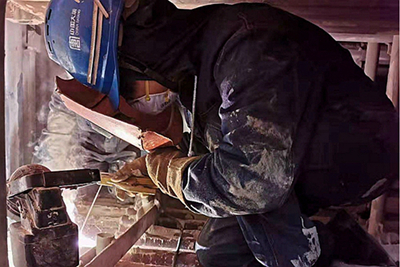 修復(fù)振打器磁軸,更換脫落的陰極線,對(duì)倒伏的陽(yáng)極板進(jìn)行清理、恢復(fù)、固定,唐匯軍就這樣一樣樣地、默默無(wú)聞地做著,偶爾工作間隙里,他會(huì)開(kāi)兩句玩笑,緩和一下枯燥和疲憊。出了爐子,吃個(gè)工作餐,耽誤不到半個(gè)小時(shí),又立即扎進(jìn)了工作中,身邊的同事總是被他的工作態(tài)度激勵(lì)著。“不能偷懶?;?,必須檢查到位,修必修好。”爬出爐子時(shí)已經(jīng)腰酸背痛,唐師傅依舊微笑得那么純粹。這項(xiàng)檢修工作持續(xù)了半個(gè)月,才得以很好完成。