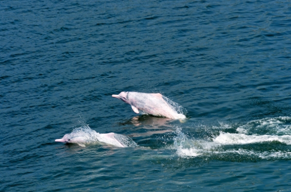中華白海豚在陽(yáng)江核電海域嬉戲