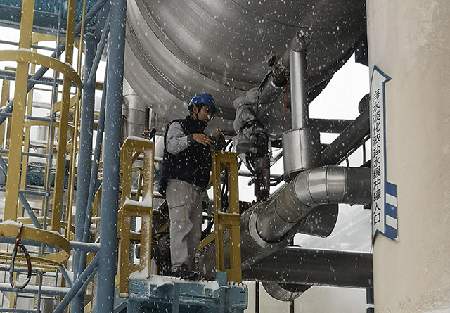 國投北疆員工排查現(xiàn)場設備防寒防凍措施、檢查就地電伴熱投運情況