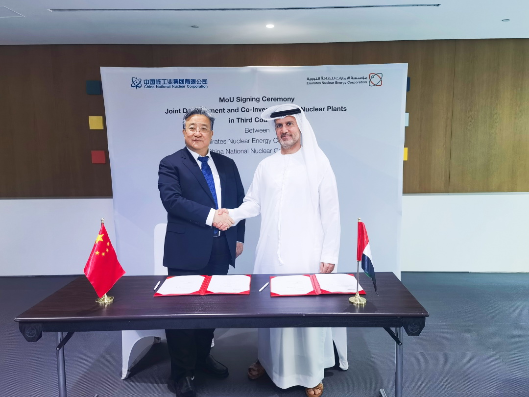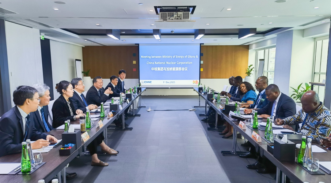 為進(jìn)一步推動(dòng)核能國(guó)際合作,促進(jìn)核能在應(yīng)對(duì)氣候變化中發(fā)揮更大作用,11月30日至12月1日第28屆聯(lián)合國(guó)氣候變化大會(huì)(COP28)期間,中核集團(tuán)董事長(zhǎng)余劍鋒率團(tuán)出訪阿聯(lián)酋,與阿聯(lián)酋核能公司董事總經(jīng)理兼總裁哈馬迪舉行會(huì)談,雙方簽署了第三國(guó)核能聯(lián)合開發(fā)與投資的諒解備忘錄。訪阿期間,余劍鋒還應(yīng)約會(huì)見了世界核協(xié)會(huì)總干事萊昂、加納能源部長(zhǎng)普倫佩,就進(jìn)一步深化合作達(dá)成共識(shí)。
