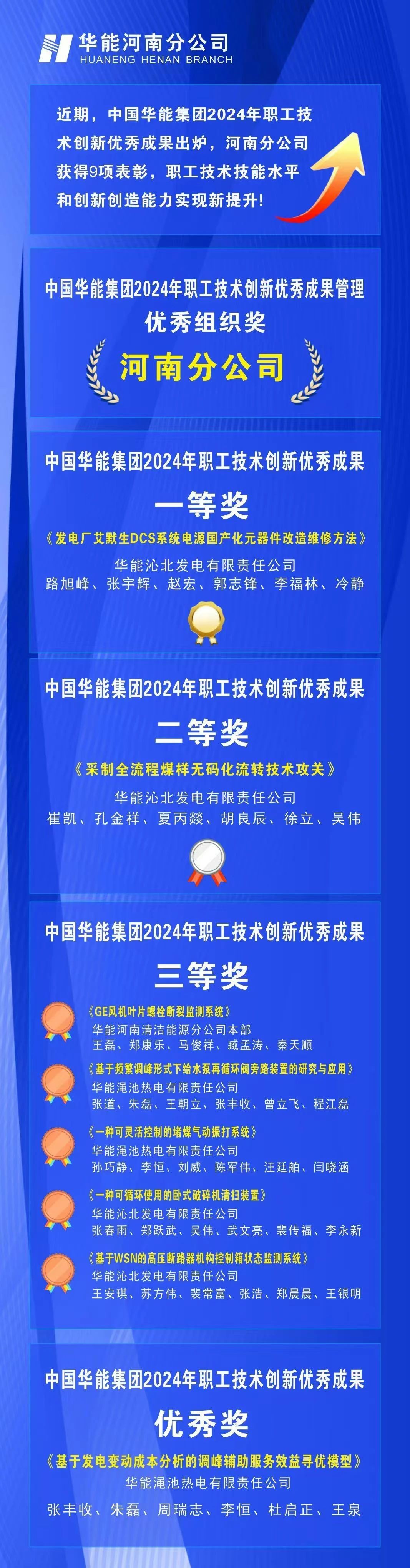 華能河南分公司獲華能集團2024年職工技術(shù)創(chuàng)新優(yōu)秀成果評選9項表彰