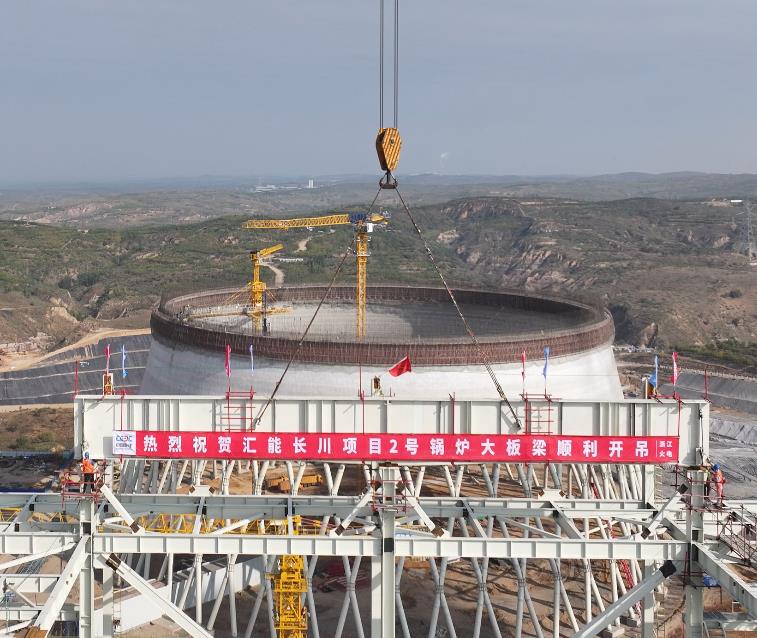 10月5日,中國(guó)能建浙江火電承建的內(nèi)蒙古匯能長(zhǎng)川項(xiàng)目2號(hào)機(jī)組鍋爐大板梁吊裝就位。