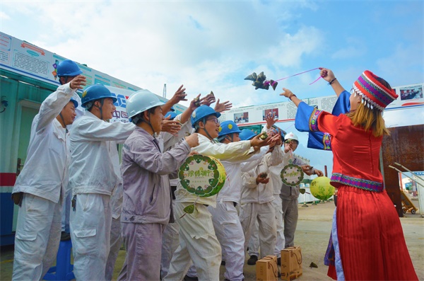“粽情粽意,端午迎祥,堅(jiān)守崗位,履職盡責(zé)……”這是中國(guó)能建安徽電建二公司防城港項(xiàng)目部張富班早班會(huì)上高喊口號(hào)的情景。端午前夕,身穿壯族服飾的小姑娘黃發(fā)娟將粽子串起并拋出,班組成員爭(zhēng)相伸手接。只見(jiàn),20余名施工人員拿著粽子,剝著鴨蛋,有說(shuō)有笑。端午未至,可濃濃的粽香已彌漫整個(gè)核電現(xiàn)場(chǎng)……