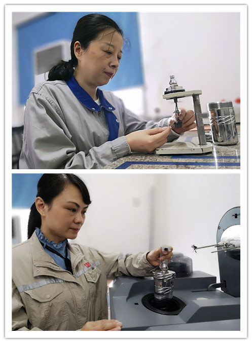 燃料管理部:化驗(yàn)班化驗(yàn)員在測試煤樣發(fā)熱量